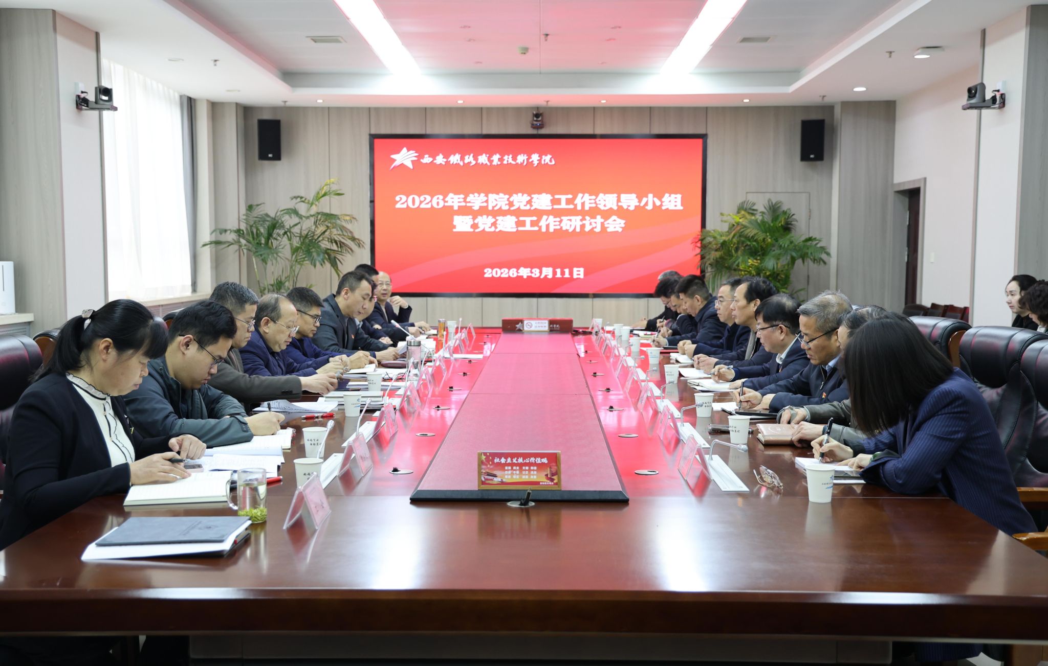 3月11日,学院召开2026年党建工作领导小组会议暨党建工作研讨会。学院党委书记赵春平,党委副书记、纪委书记邓轩,党委副书记任治军出席会议。各党群部门、教务处、马克思主义学院负责人,各二级学院党总支书记、副书记参加会议。会议由邓轩主持。